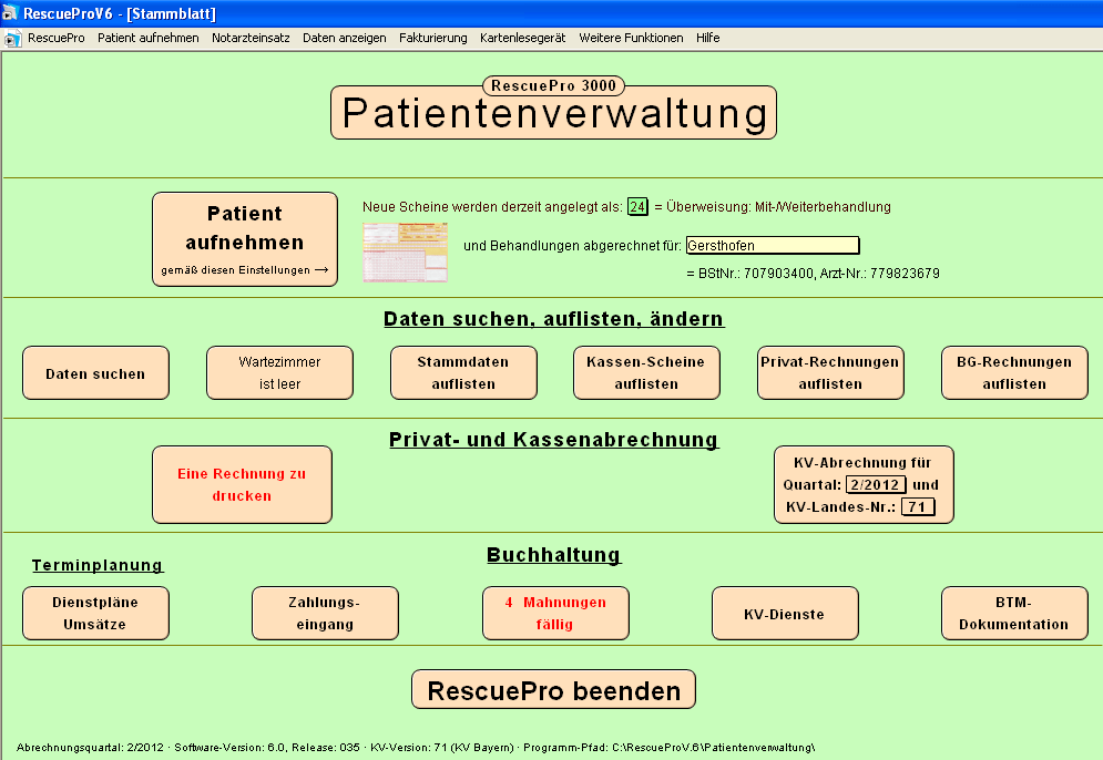 Das Hauptmenü ist die Schaltzentrale Ihrer Patientenverwaltung: hier stehen Ihnen alle benötigten Funktionen zur Verfügung: