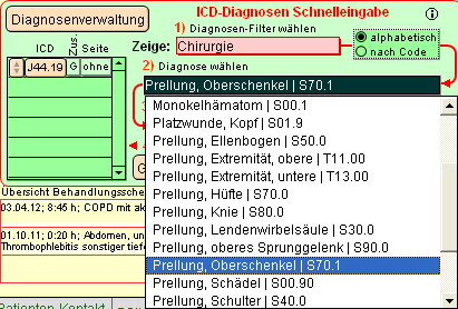 Natürlich steht Ihnen auch der gesamte ICD-Diagnosenbaum/-Thesaurus zur Verfügung und eine blitzschnelle Suchfunktion, die auch die ausgefallensten Diagosen findet.