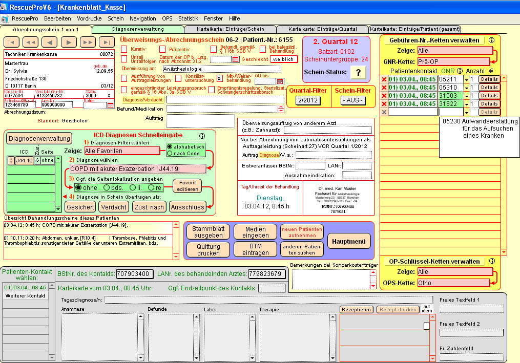 Als niedergelassene/r Anästhesist/In werden Sie kein Abrechnungsprogamm finden, das Ihnen mehr Arbeit abnimmt und erleichtert als RescuePro! RescuePro wurde von Anästhesit/Innen für Anästhesit/Innen geschrieben! Wir haben den Anspruch, dass Sie ohne jemals ein Handbuch zu lesen nach einer halbstündigen kostenlosen Einführung mühelos und ohne Anstrengungen Ihre elektronische KV-Abrechnung erstellen können.
